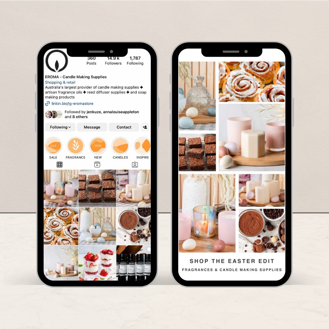 This initiative focused on showcasing candle-making products and fragrances with a creative twist for Easter celebrations. The campaign encompassed various channels, including organic social media posts, engaging email marketing, a revamped website, and eye-catching in-store signage. From highlighting unique uses for candles during the Easter season to promoting a variety of fragrances, the campaign aimed to inspire and capture the festive spirit across different touchpoints, creating a cohesive and enticing experience for customers both online and in-store.